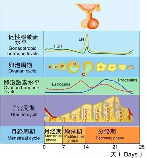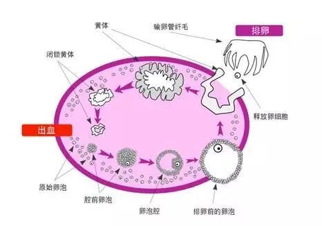 进入青春期后,垂体开始分泌促性腺激素,唤醒卵巢内的原始卵泡开始发育,合成雌激素,卵母细胞周围的空间充满液体,内含大量雌激素。增长的卵泡逐渐向卵巢表面移动,卵泡壁愈变愈薄,随后破裂,成熟的卵子随卵泡液被吸入输卵管,这一过程称为排卵。每一月女性只会有一个成熟的卵泡排出,而一般卵泡在直径18mm以上就会有成熟卵子在里面了。